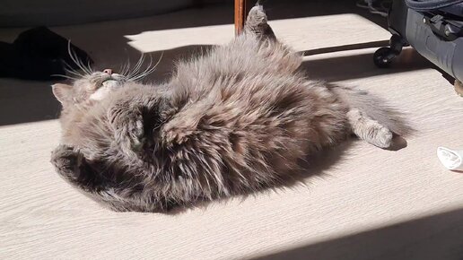 Солнечный ребенок - как наш пушистый одноглазый "пират" наслаждается солнечными ваннами