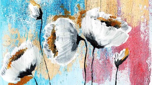 Как нарисовать цветы. Как нарисовать интерьерную картину. Рисуем необычным способом.