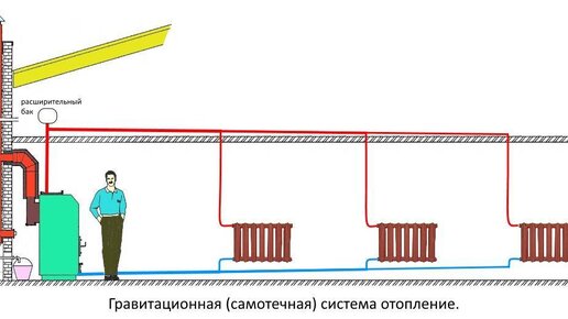 Термосифонная отопления частного дома: не нужно электричества и всеядный котел: газ, дрова уголь.