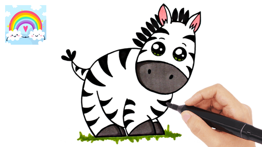 Как нарисовать ЗЕБРУ | Рисуем шаг за шагом | Простые уроки рисования | Легкие рисунки для срисовки ❤