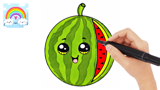 Как нарисовать АРБУЗ | Рисуем шаг за шагом | Простые уроки рисования | Легкие рисунки для срисовки ❤