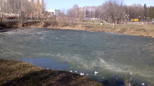 Чайки летают над озером в поиске добычи, хотя лед еще не растаял