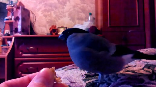 Снегири обнаружили, что грецкие орехи не хуже семечек