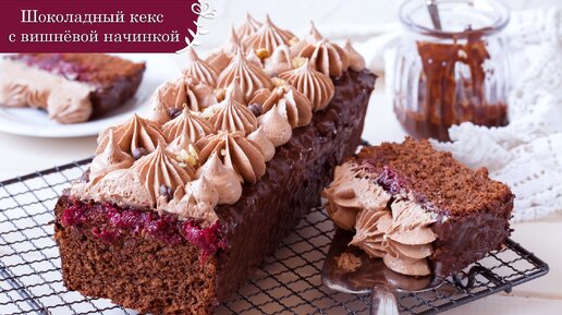 Шоколадный кекс с вишнёвой начинкой и масляным кремом на швейцарской маренге.