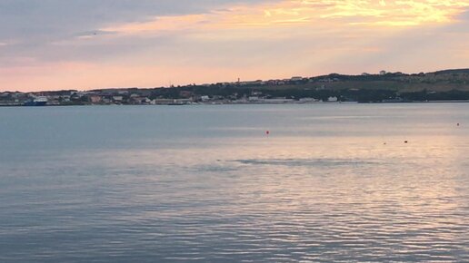 Геленджик, дельфины у берега на закате.