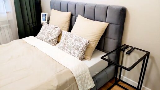 В этой уютной спальне притаился еще и кабинет, правда на балконе. Не холодно там работать?