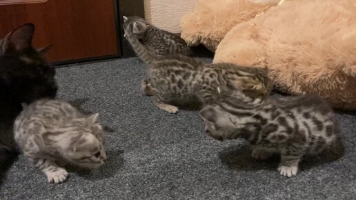 Бенгальские котята учатся ходить.