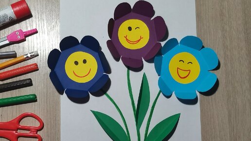 Веселые цветочки. Объёмная поделка из цветной бумаги. Детское творчество