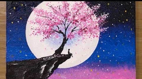 Рисуем картину - Цветущая сакура на выступе / Техника рисования акриловыми красками