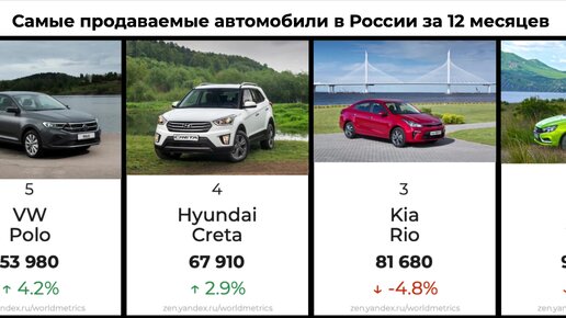 ТОП-25 самых продаваемых в России автомобилей за 12 месяцев