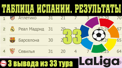 Подводим итоги 33 тура Чемпионат Испании (Ла Лига). Результаты, таблица и расписание.