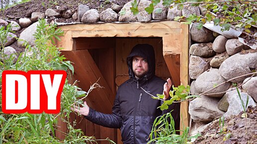Сделал красивый вход в подземную баню из остатков пиломатериала, песка и камня. Строительство бани-землянки, часть 6