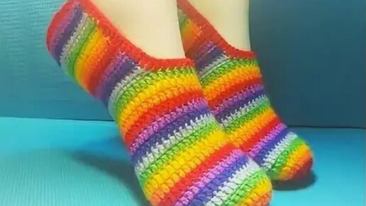 #583 ПРОСТЫЕ ТАПОЧКИ КРЮЧКОМ "РАДУГА" ДЛЯ НАЧИНАЮЩИХ. МАСТЕР КЛАСС.