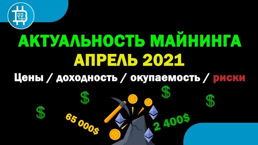 Актуальность МАЙНИНГА на АПРЕЛЬ 2021 / ВТС 65 000$ ETH 2 400$ / Доходность, окупаемость, риски
