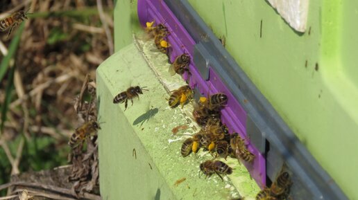 Пчёлы с обножкой с вербы 18 апреля 2021 года.