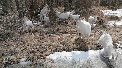 Пасутся козы в весеннем лесу ищут чем бы полакомиться. Ммм.... какая вкусная талая водичка!)