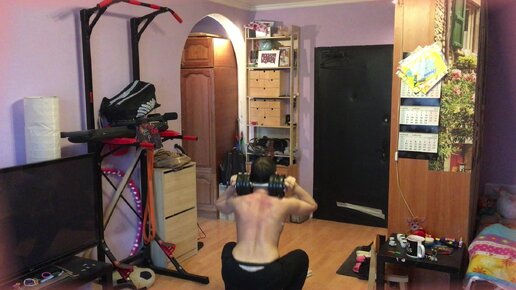 Швунгуем гантель, приседаем, отжимаемся, брусья!