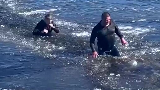Спасение собак из ледяного озера