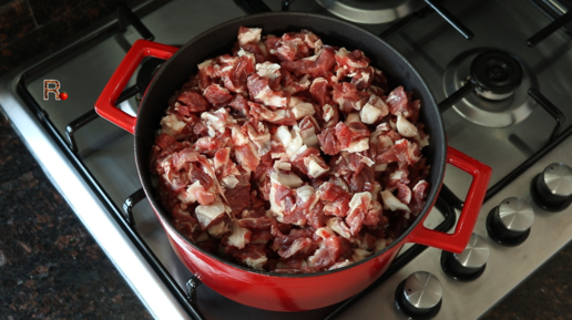 Тушу сразу большую кастрюлю мяса, а потом добавляю в разные блюда