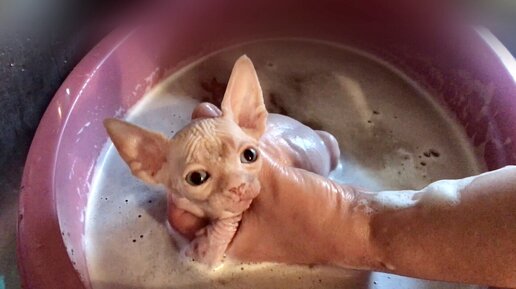Купаю💦самого маленького и обаятельного котёнка Сфинкса😻Малыш❤️купается первый раз!
