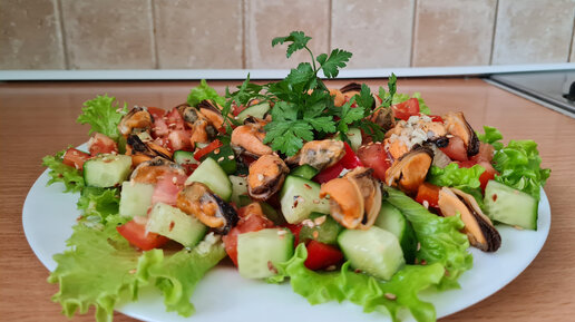 Обалденный салат из мидий и свежих овощей. Потрясающий вкус, необычайно яркий вид и лёгкость в приготовлении.