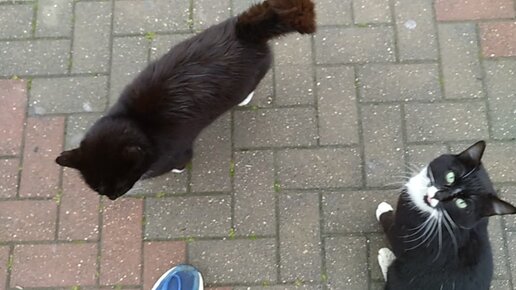 Прекрасные кот и кошка, живущие на парусниках у набережной. Прибежали за кормом