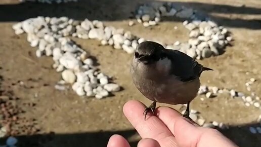 Ручная птичка Поползень. Садится на ладонь и просит семечек