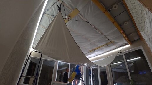 Парящий натяжной потолок с Зеркальным полотном. Таймлапс натяжки