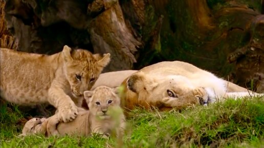 Заботливые львицы со своими детёнышами в дикой природе
