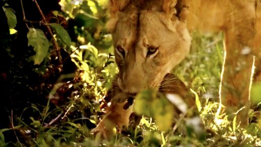 Львица с новорожденным детёнышем: первые шаги львёнка