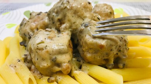 ФРИКАДЕЛЬКИ в сливочно-грибном соусе. Очень ароматно, сытно, вкусно!