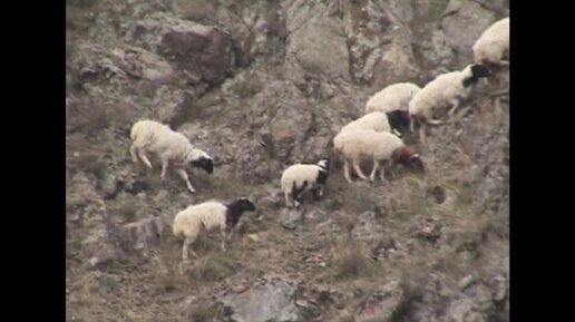 Барашки карабкаются по отвесным склонам. Горный Алтай