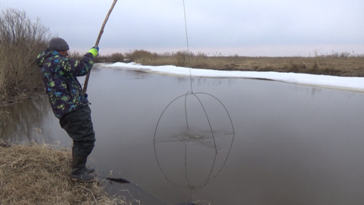 Огромные караси на паук подъёмник. Лед тронулся.
