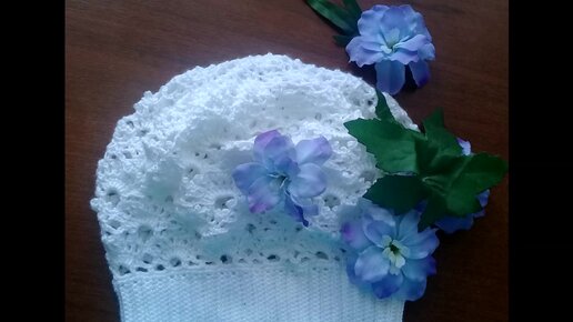 Весенняя детская шапка - беретка, красивым узором. Вязание крючком