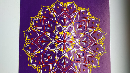 Рисую яркую мандалу на сиреневом фоне