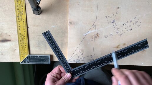 Как с помощью обычного угольника быстро строить углы 10, 20, 30, 40, 50, 60, 70 и 80 град.?