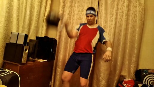 10ти минутная тренировка с гирями 16кг. 5 минут толкаю, 5 минут рву.