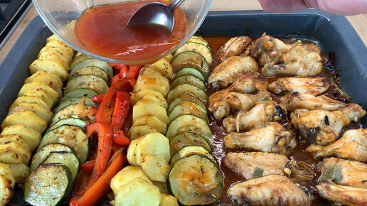Запечённые куриные крылья с овощами. Очень просто сделать дома