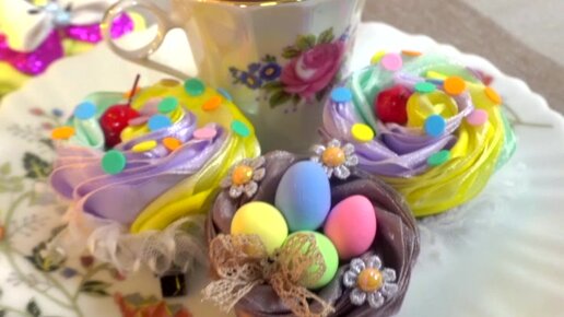 Пасхальные зарисовки! Готовим капкейки, красим яйца, плетем гнездышки на пасху Канзаши diy #shorts