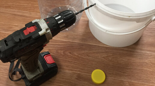 Пластиковое ведро послужило хорошей самонаполняющейся поилкой для кур