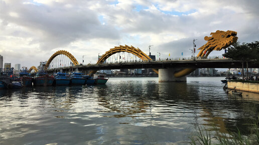Проезжаем по самому красивому мосту вьетнамского города Дананг - мосту Дракона. Дорожная зарисовка