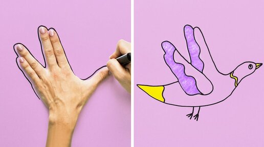 10 ИДЕЙ ДЛЯ РИСУНКА. РИСУЕМ С ПОМОЩЬЮ РУКИ! Красивые и простые рисунки
