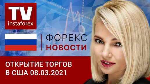 08.03.2021:Фондовые рынки падают, а нефть растет (DJIA, USDX, USD/CAD, BTC/USD)