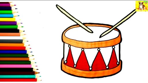 Как нарисовать и раскрасить Барабан.Детский рисунок раскраска для малышей.Рисунок раскраска.