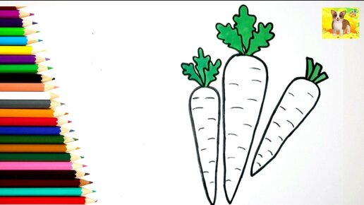 Как нарисовать Морковку.Рисунок раскраска для детей и малышей.Мультик раскраска Морковка.