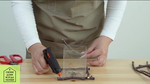 Горшок для растений из пластиковой бутылки и веток