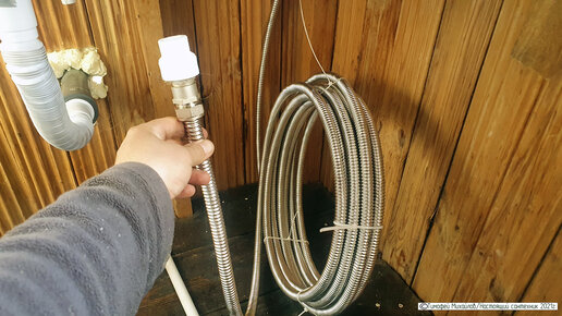 Водопровод на даче из пищевой нержавейки, показываю гофрированную трубу из "AISI 304" в деле. "Stahlmann"