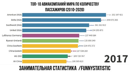 Топ-10 авиакомпаний мира по годовому пассажиропотоку