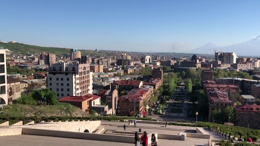 Солнечный день в Ереване. Вид на Арарат с обзорной площадки на Каскаде