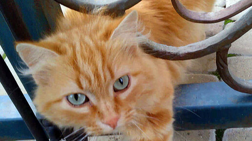 Рыжая красотка-кошка с синими глазами в Старом парке Кабардинки